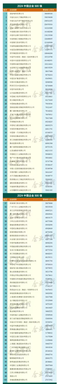 重磅發(fā)布 | 2024中國企業(yè)500強(qiáng)名單