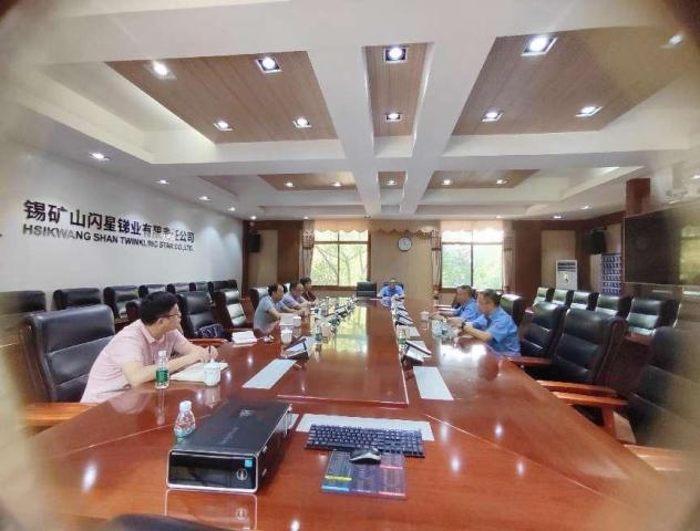 圖3 錫礦山閃星銻業(yè)領(lǐng)導向市企業(yè)“兩會”領(lǐng)導和冷水江市科工信局領(lǐng)導介紹企業(yè)生產(chǎn)經(jīng)營情況