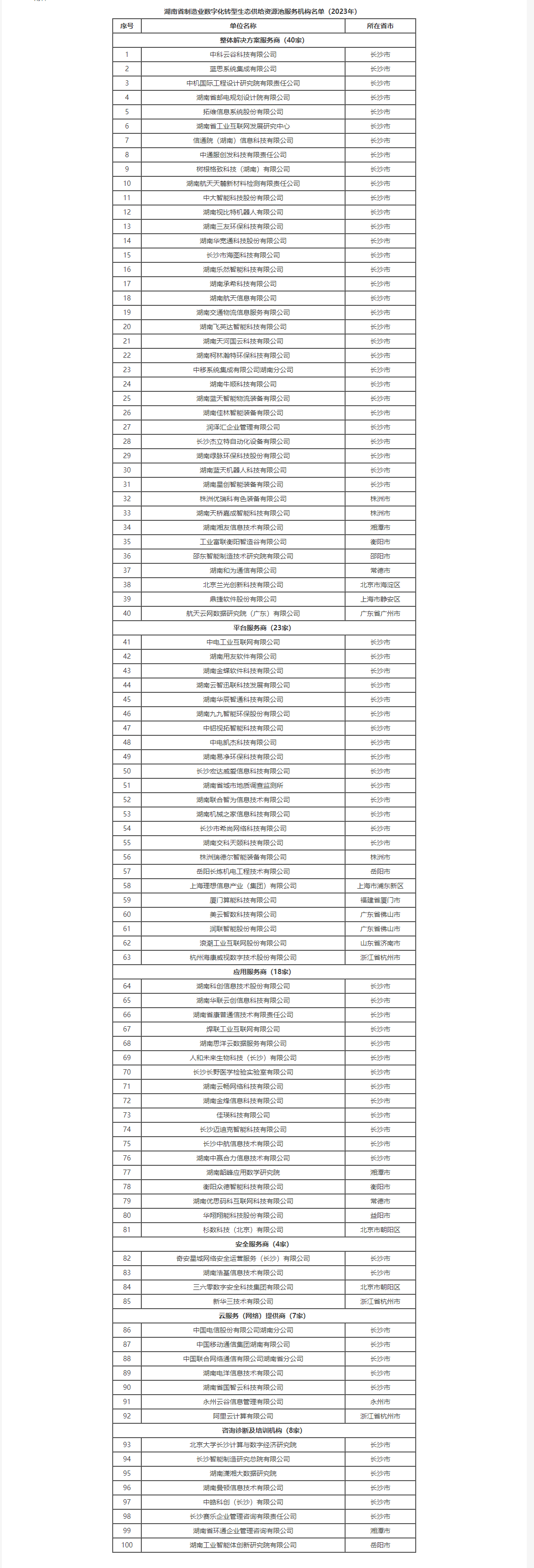 關(guān)于公布湖南省制造業(yè)數(shù)字化轉(zhuǎn)型生態(tài)供給資源池服務(wù)機構(gòu)名單(2023年)的通知