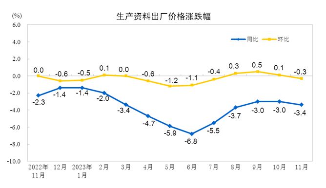 2023年11月份工業(yè)生產(chǎn)者出廠(chǎng)價(jià)格同比下降3.0% 環(huán)比下降0.3%