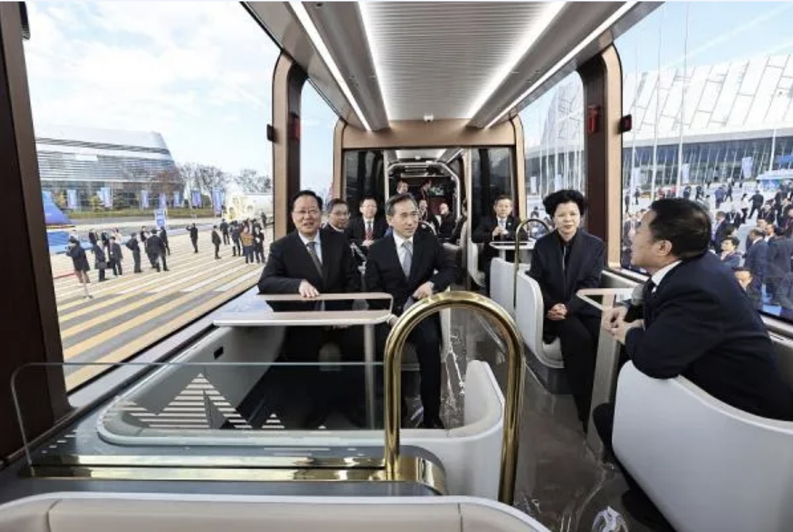 軌道交通博覽會期間,省長毛偉明,中國國際貿易促進會會長、黨組書記任鴻斌一行試乘中車新研發(fā)的雪山旅列。